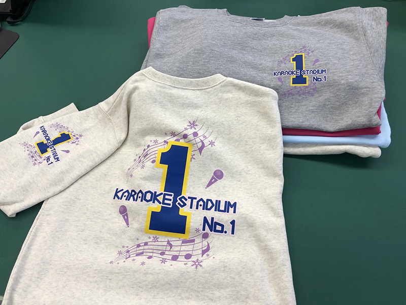 カラオケスタジアムNo.1様から、お店のロゴ入りトレーナーのご注文を頂きました。