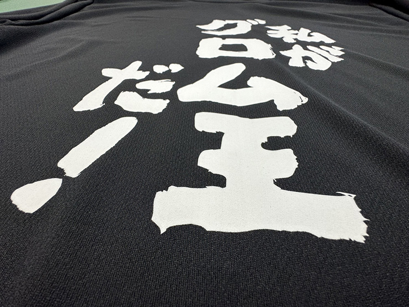 黒いシャツに大きな白い文字は、インパクトがありますね。